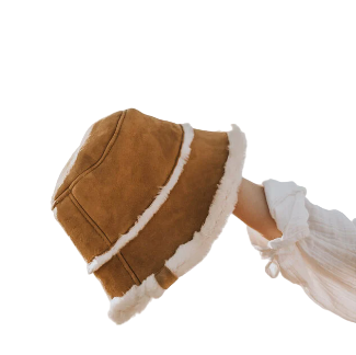 Chestnut Sheepskin Bucket Hat with White Sheepskin Trim