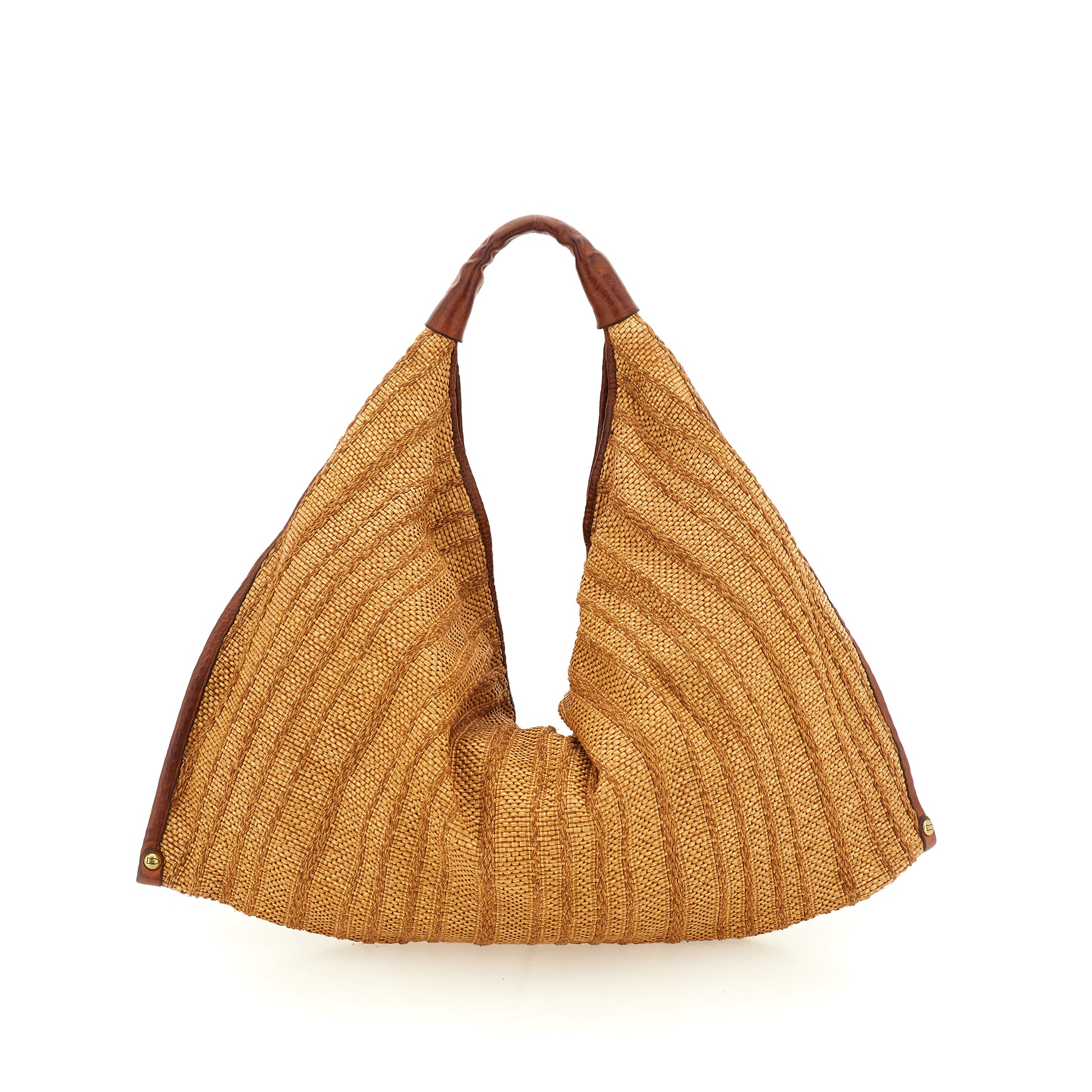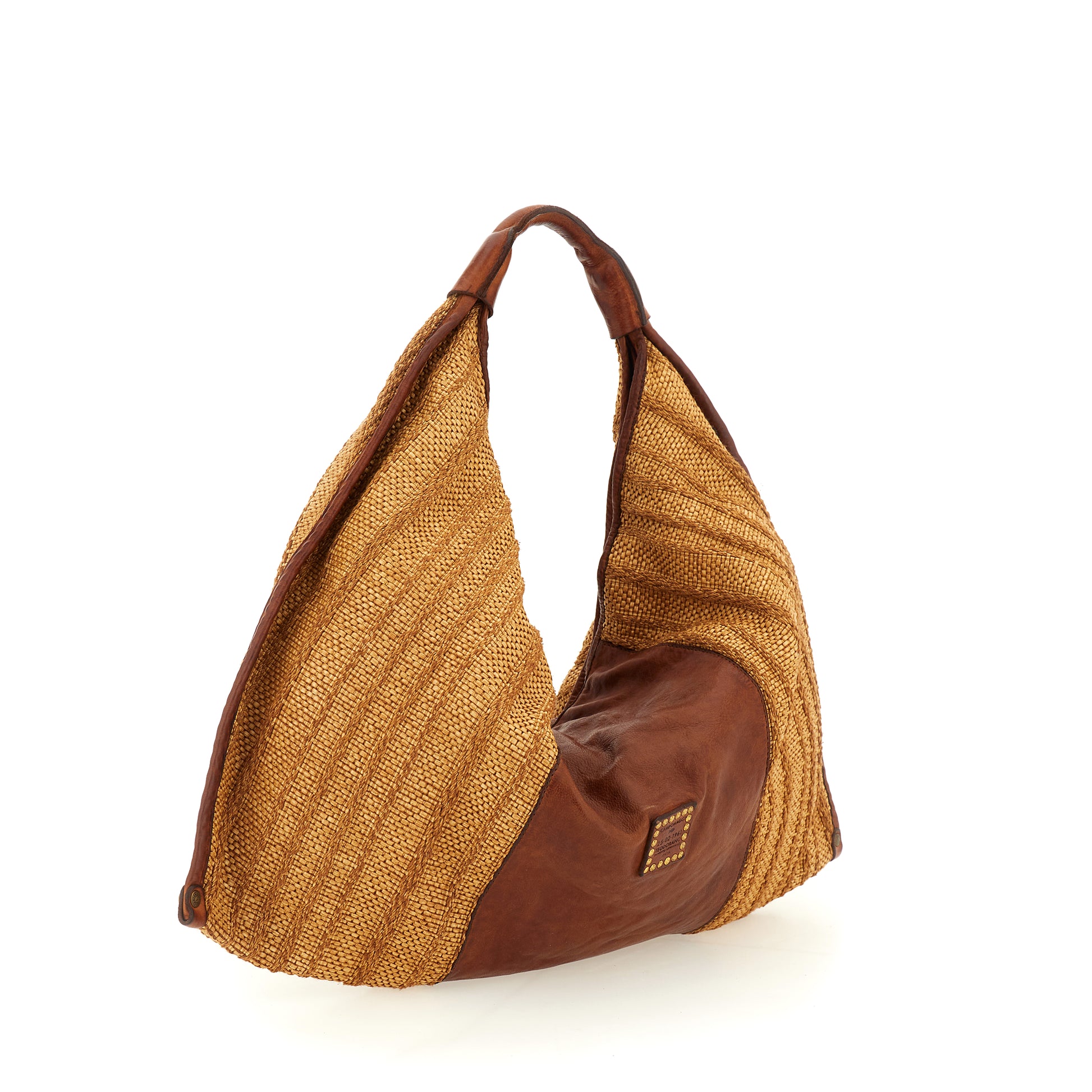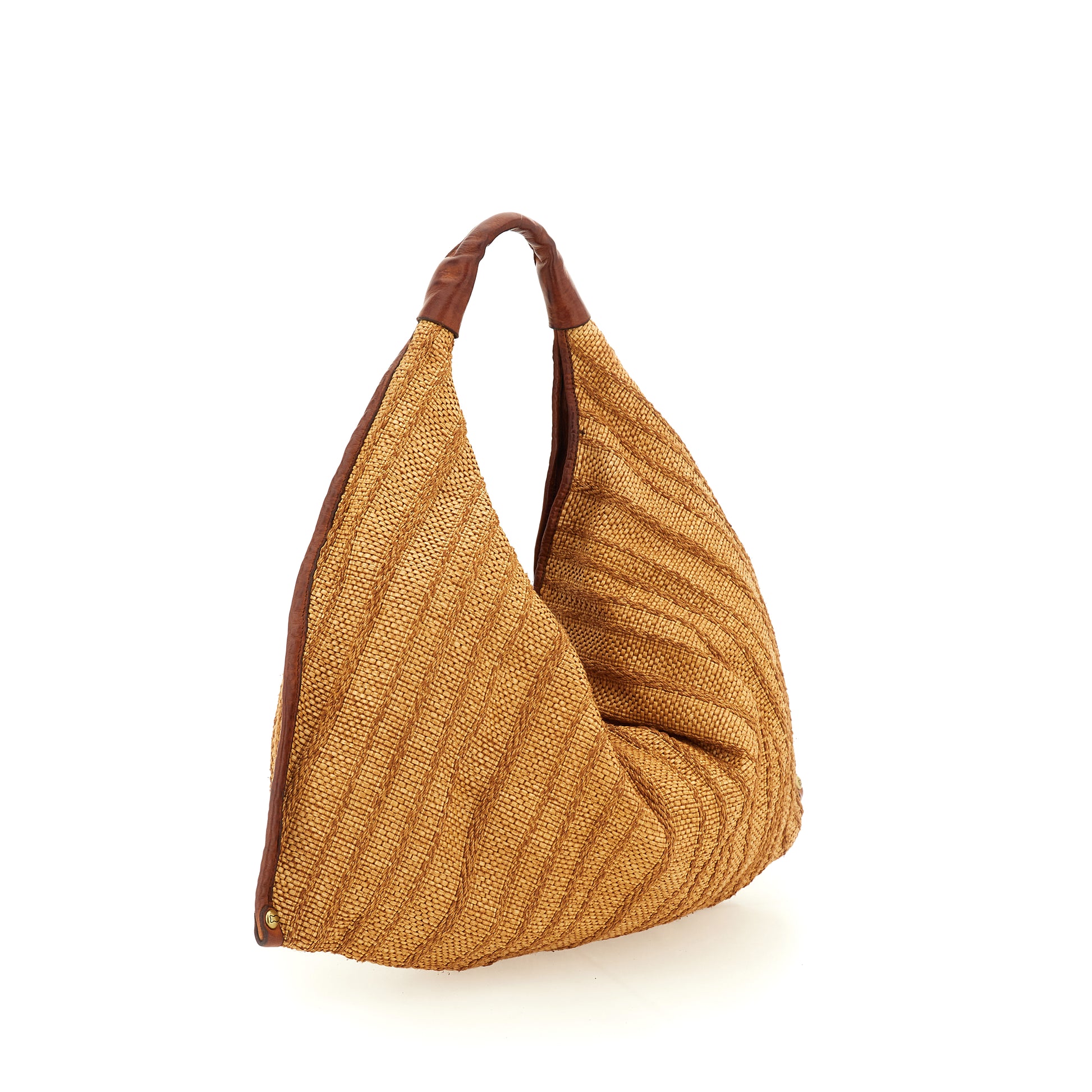 Raffia and Cognac Leather Shoulder Bag