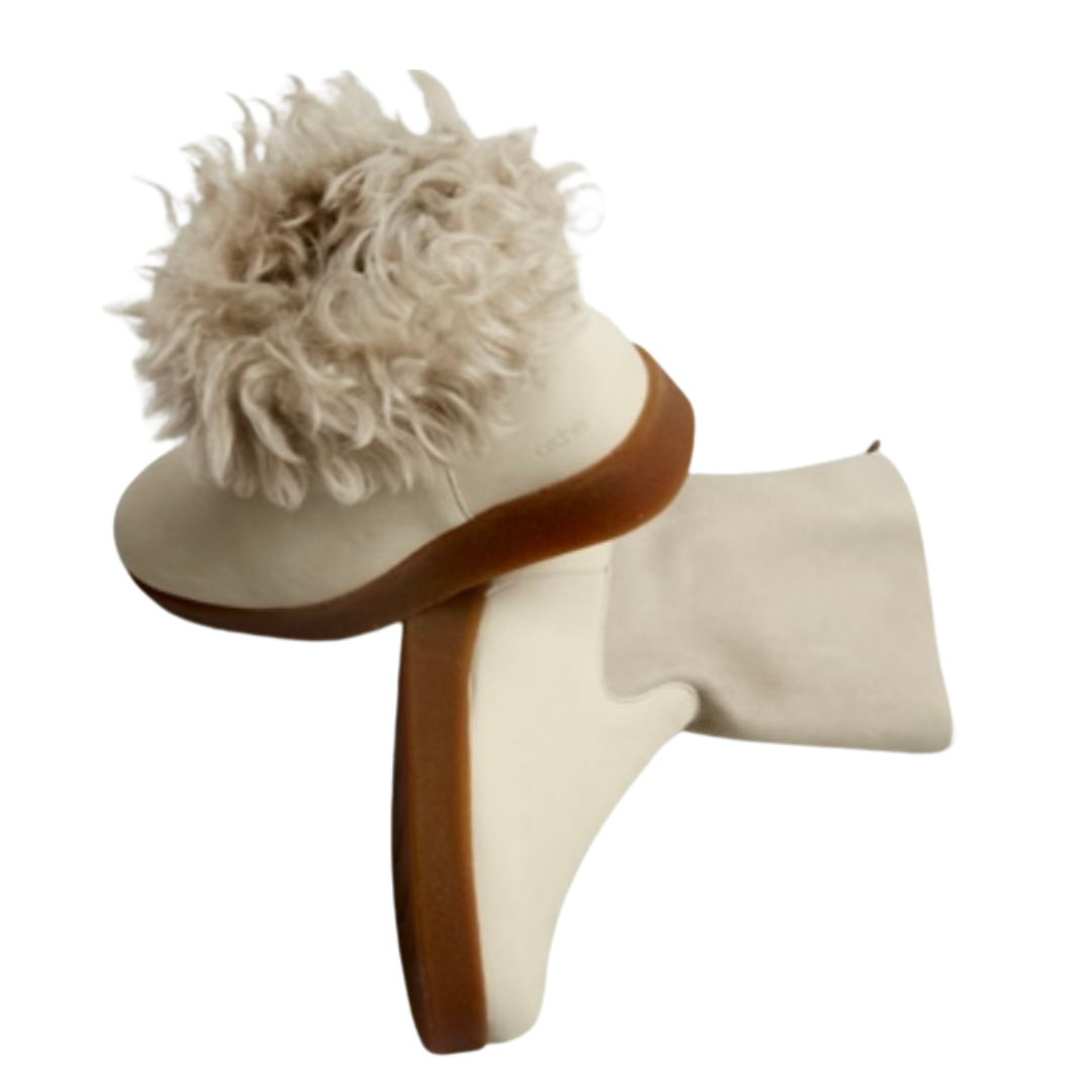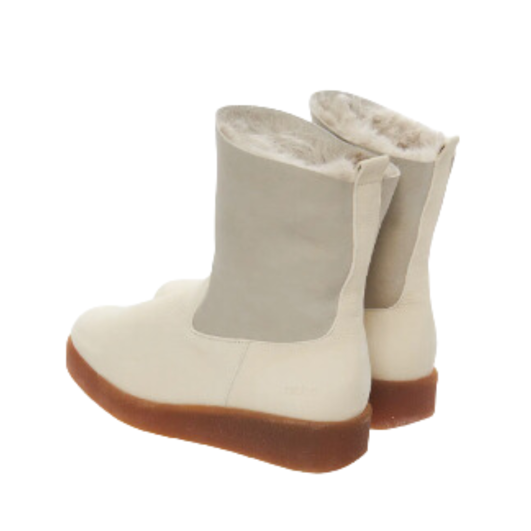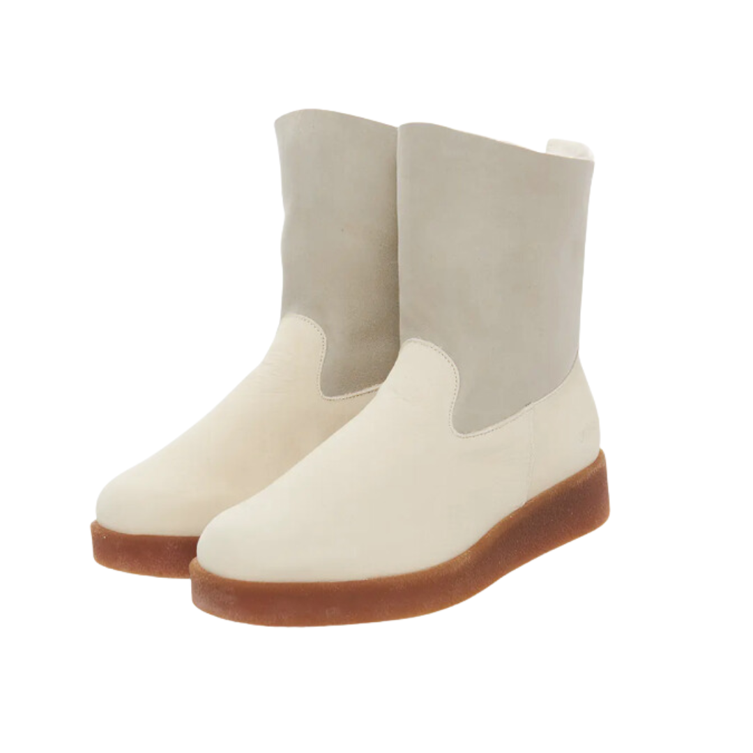 Ecru Nubuck Leather and Sheepskin Pull on Boot