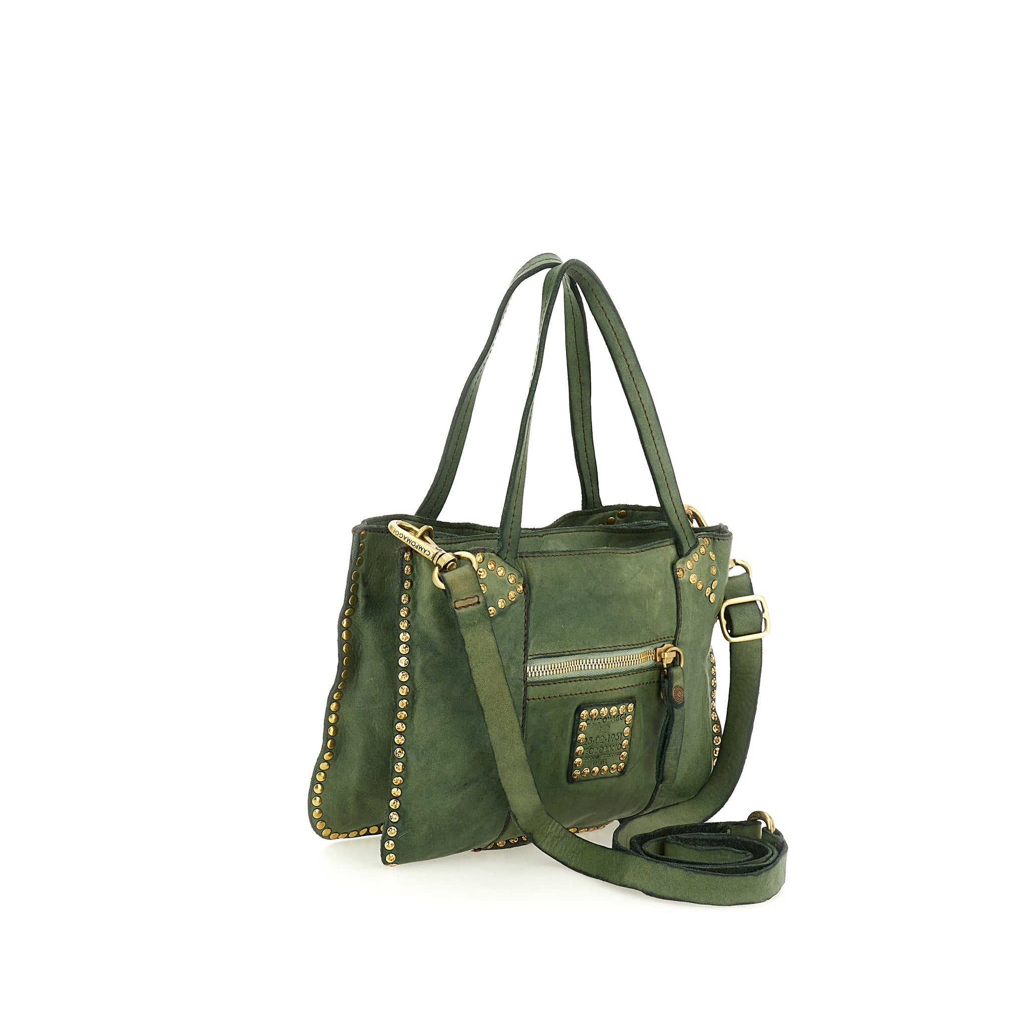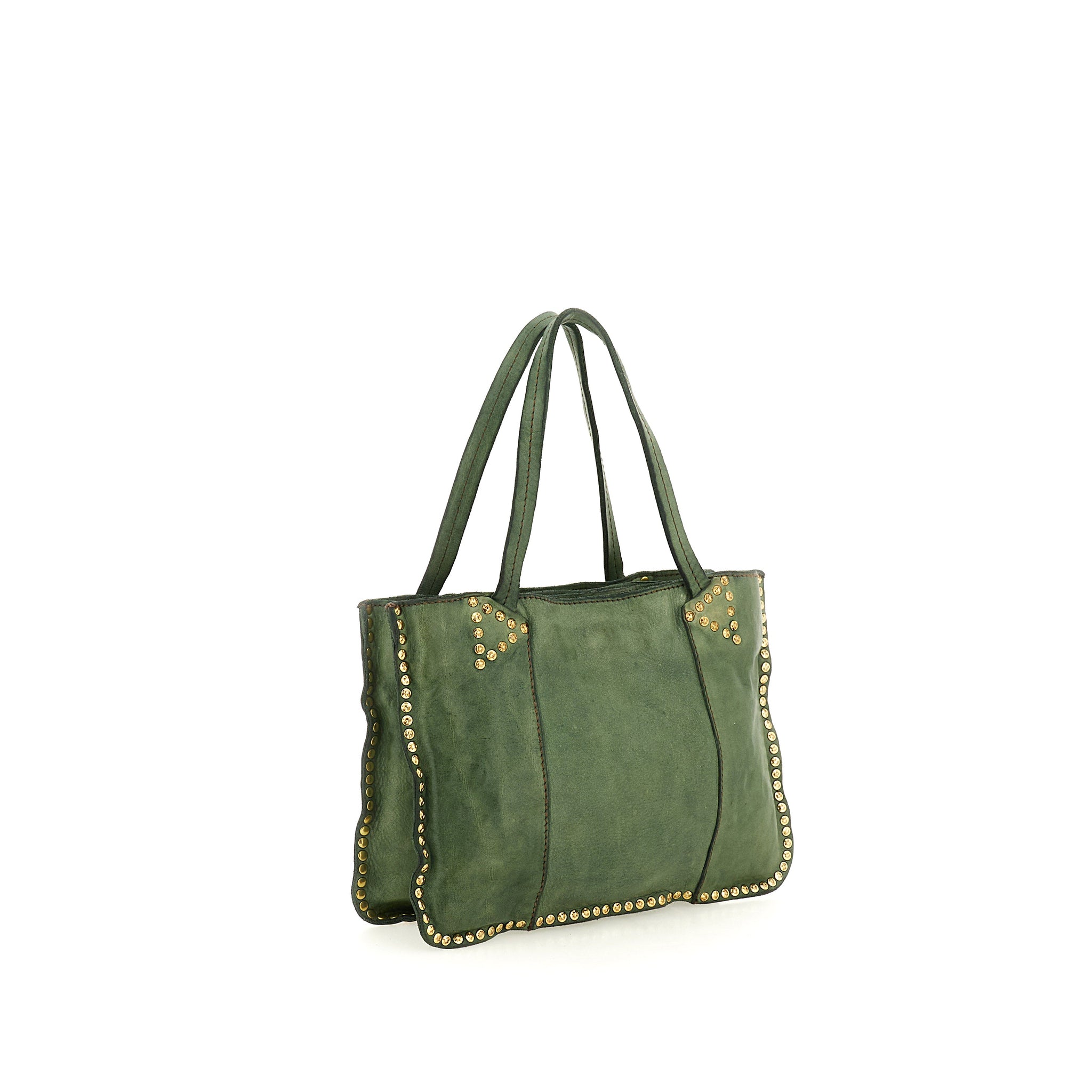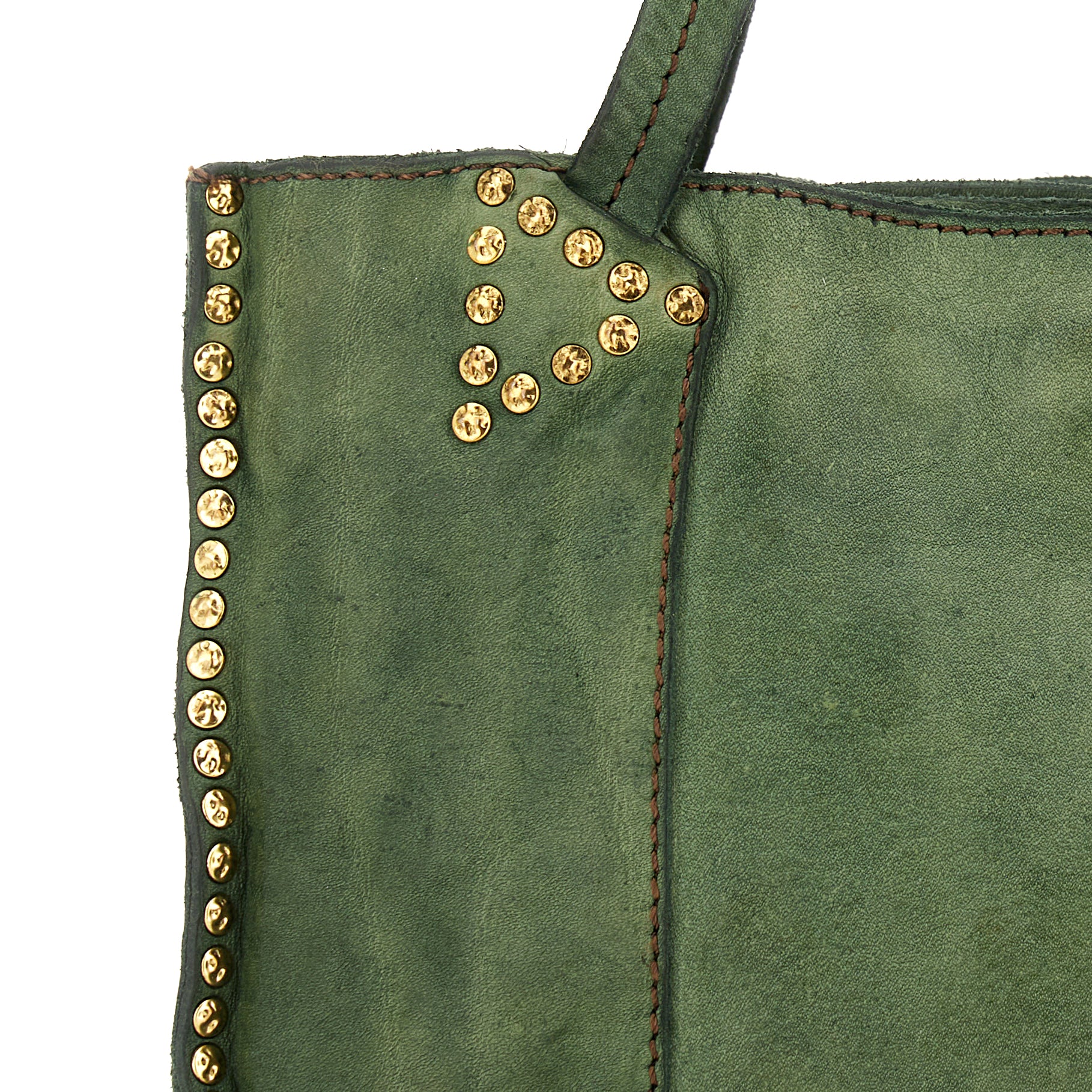 Eucalyptus Green Leather Bag with Gold Coloured Distressed Studs