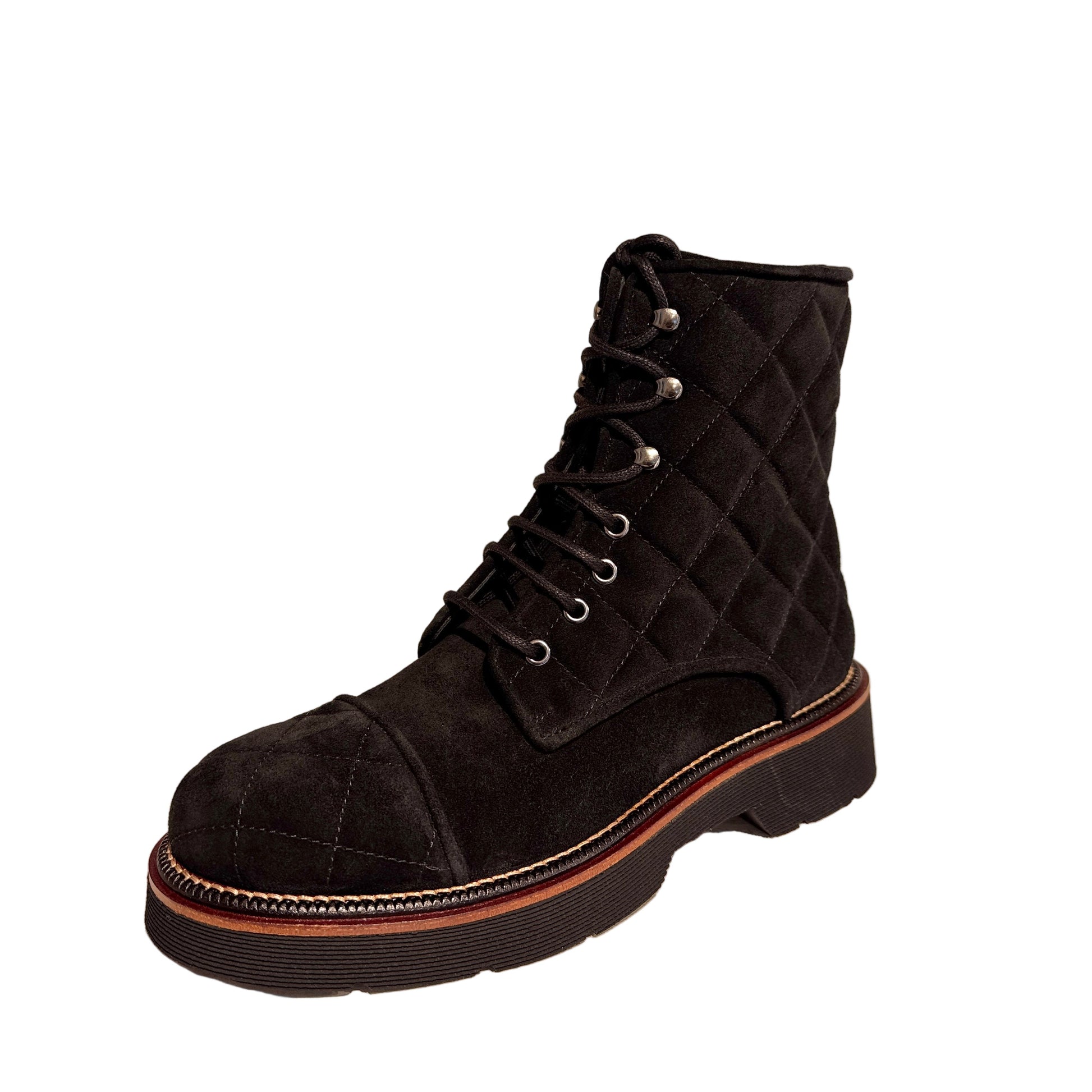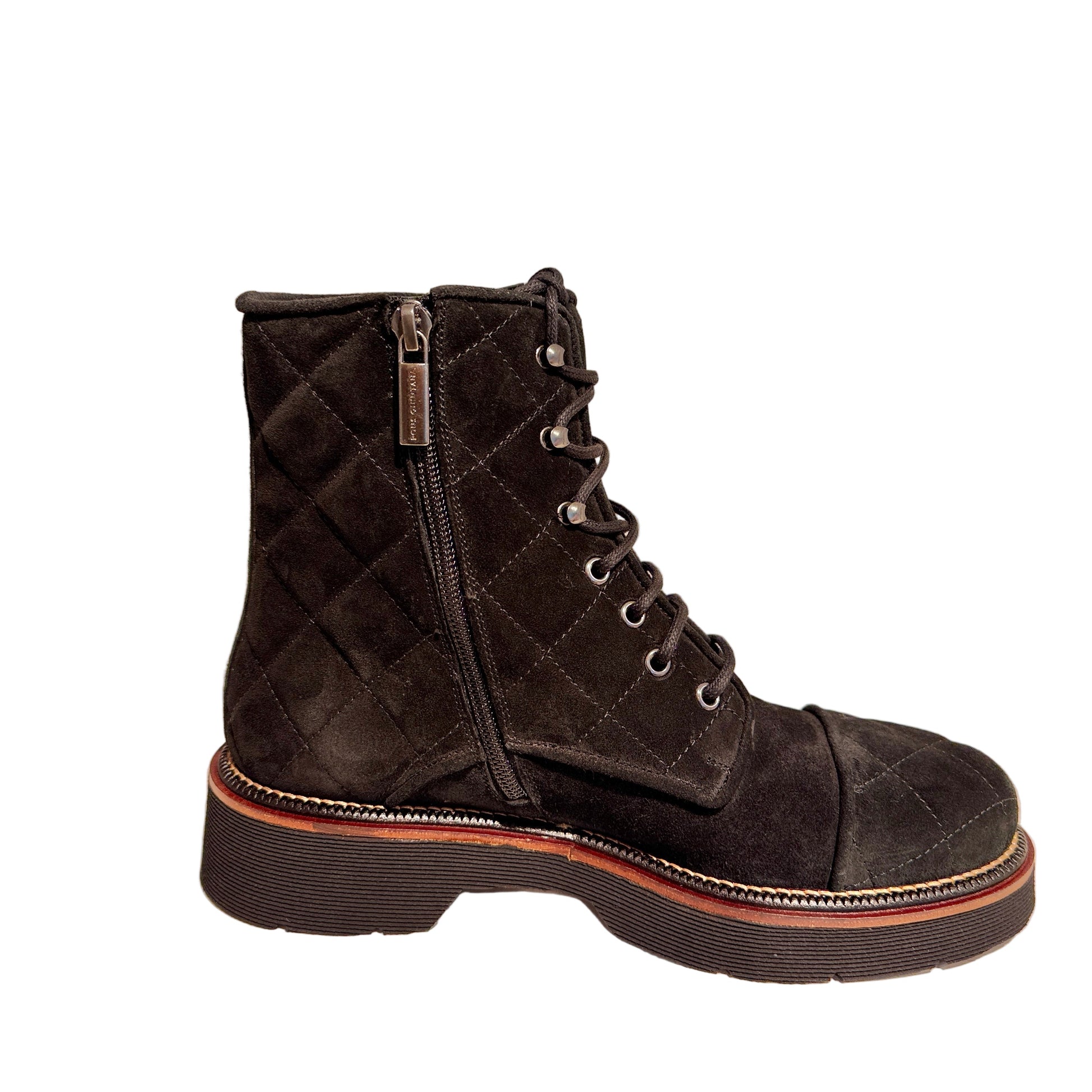 Black Suede Quilted Detail Ankle Boot
