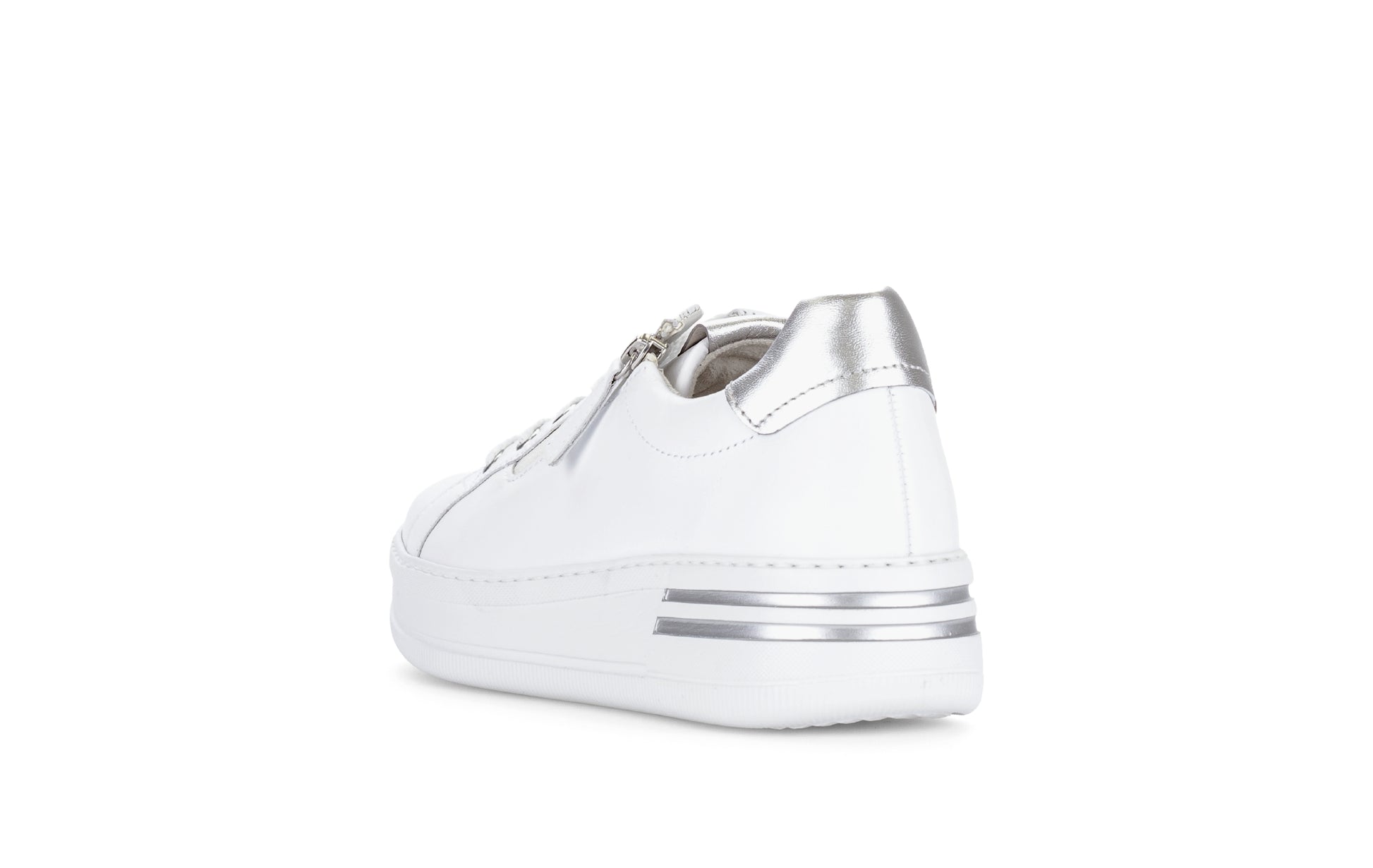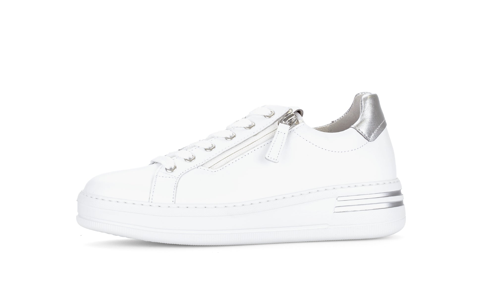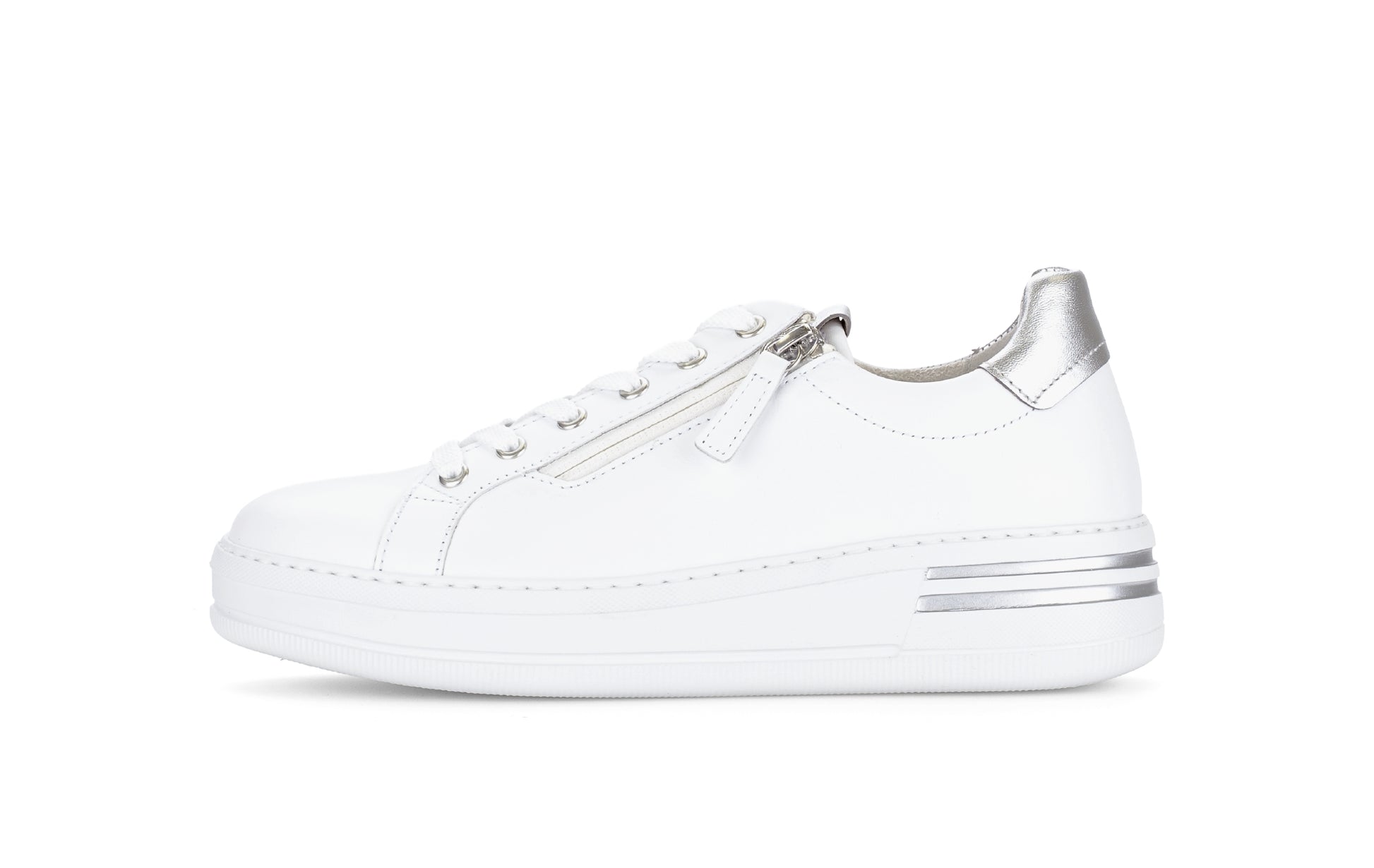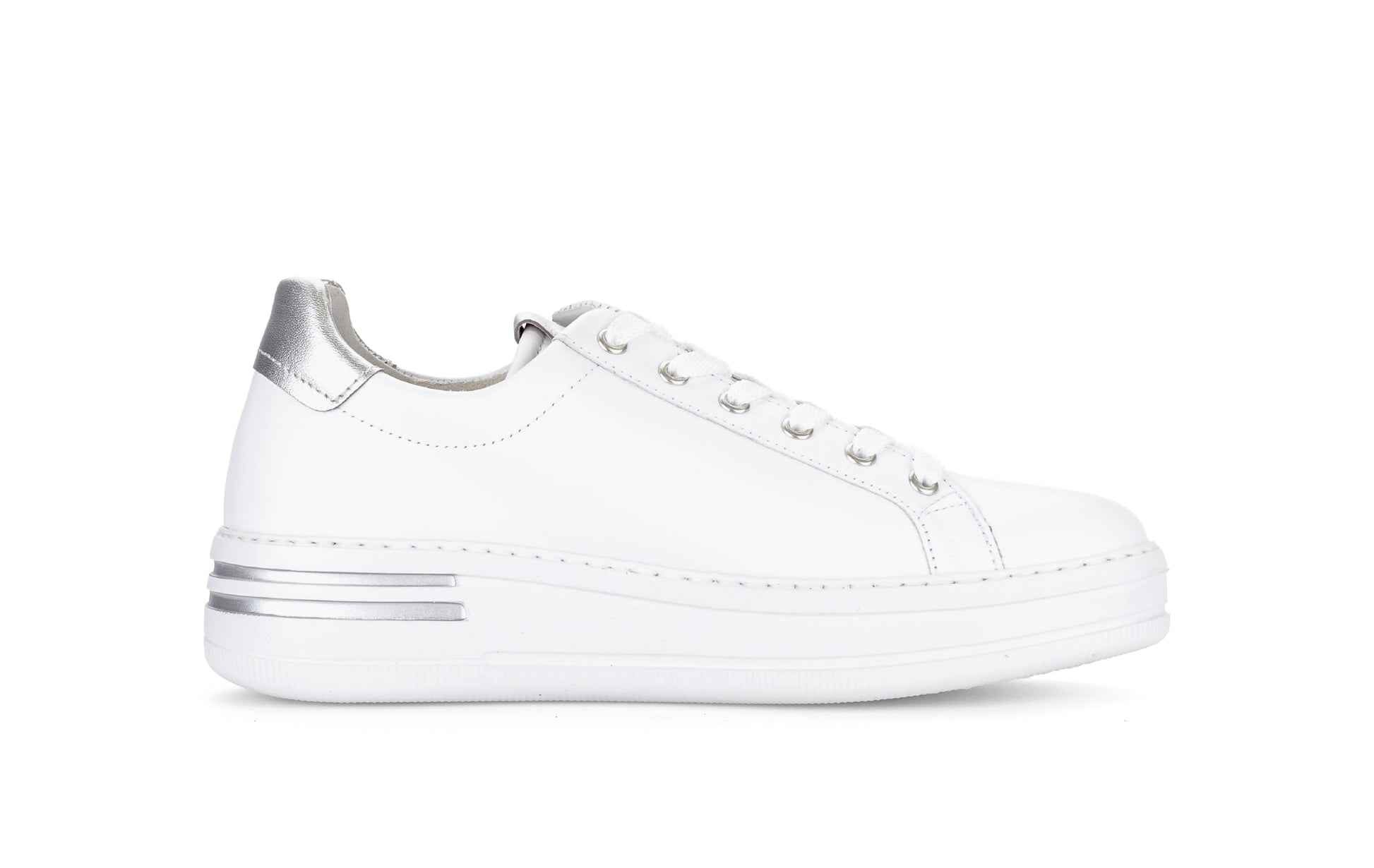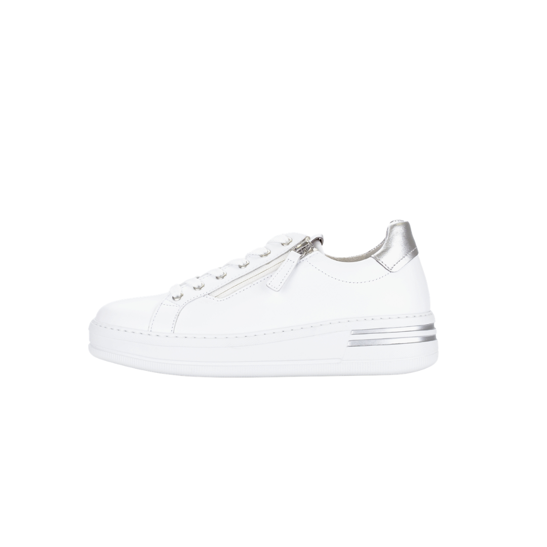 White and Silver Leather Trainer