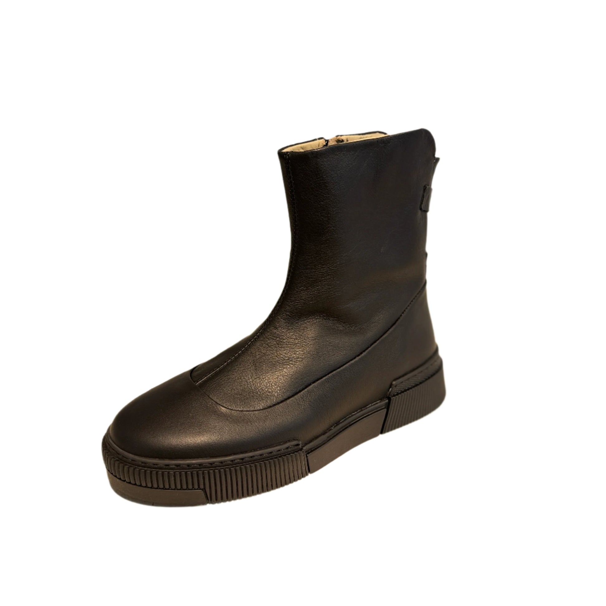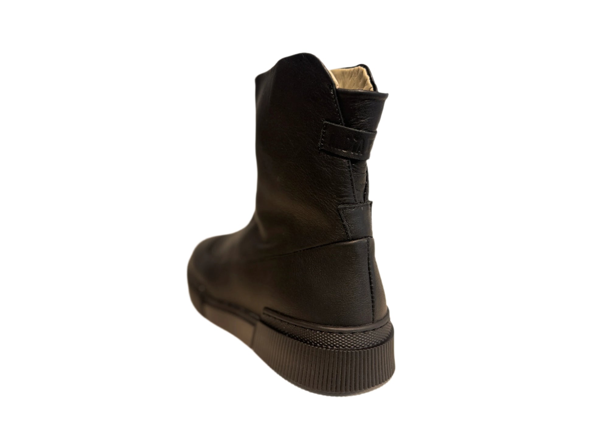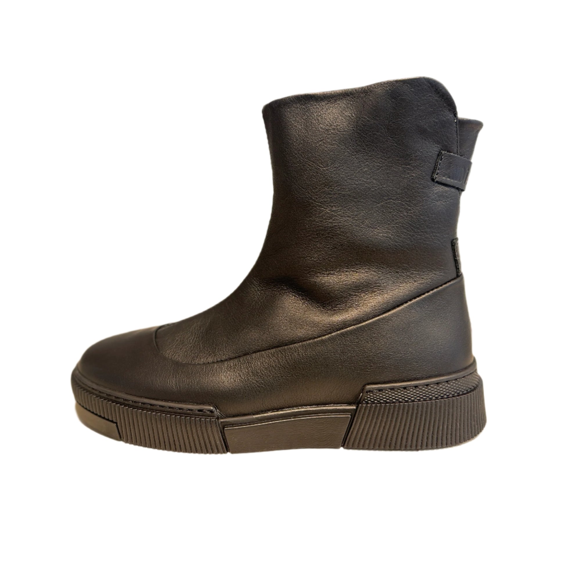 Black Leather High Ankle Boot