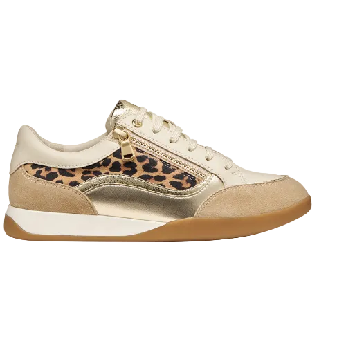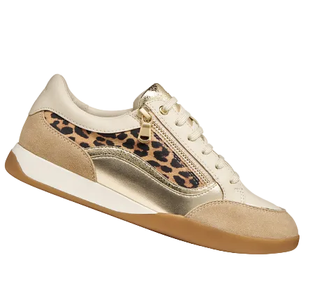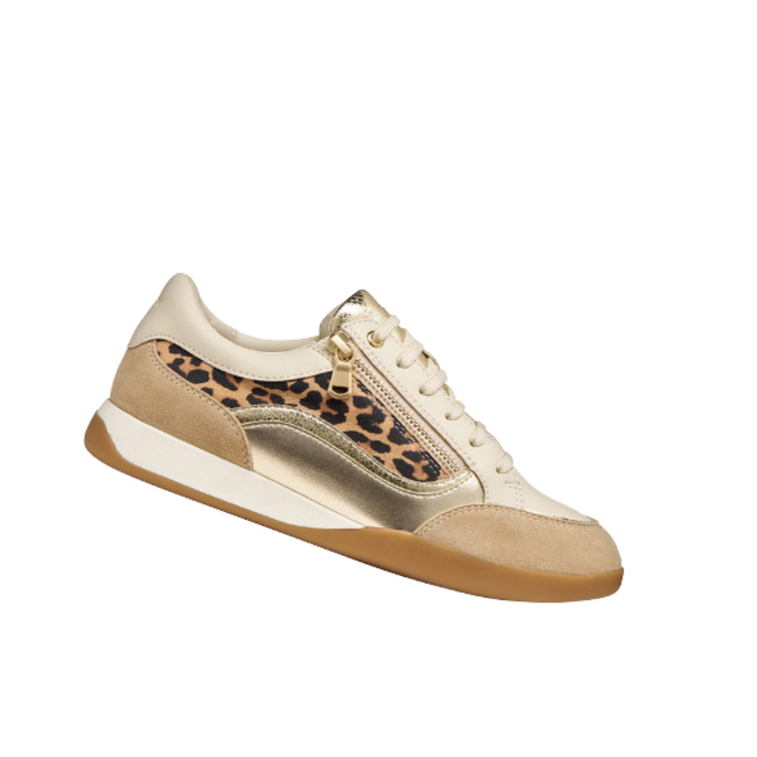 Cream,Sand and Gold Leather and Suede Trainer