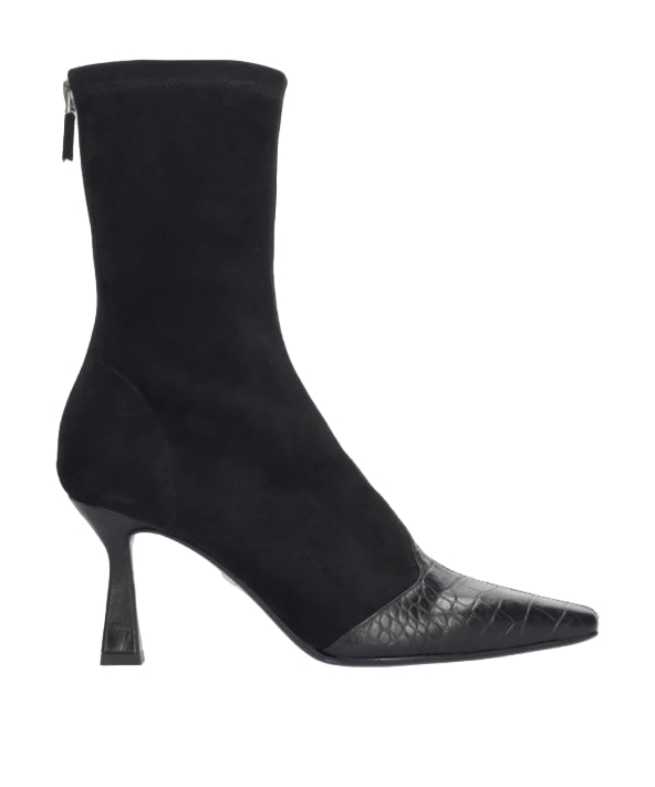 Black Suede Dressy Boot, with Textured Patterned on Front