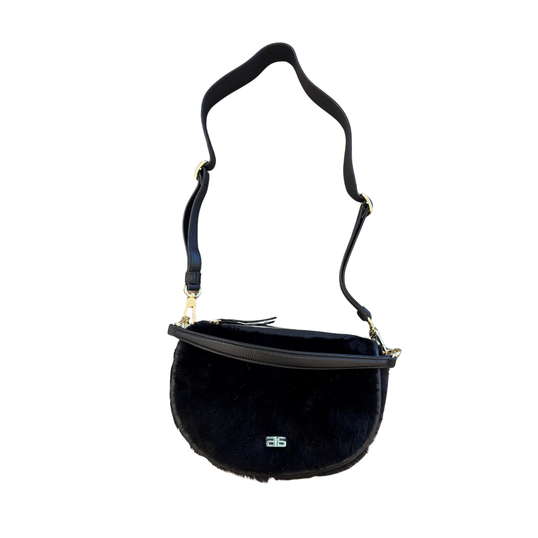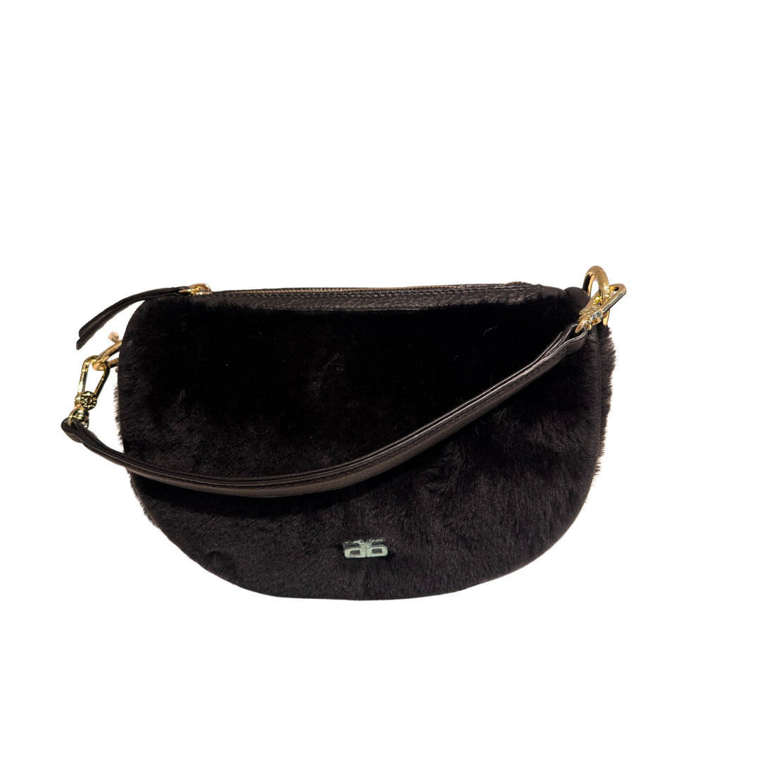 Black Shearling Black Leather Trim Bag